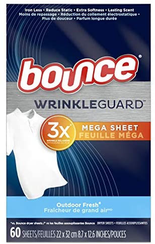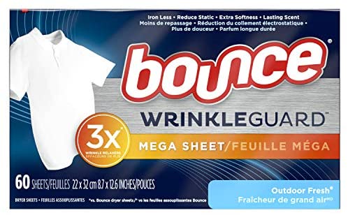Be the first to review “Bounce WrinkleGuard Mega Dryer Sheets, Fabric Softener and Wrinkle Releaser Sheets, Outdoor Fresh Scent, 120 Count (Pack of 2, 60 Count Each)” Cancel reply