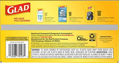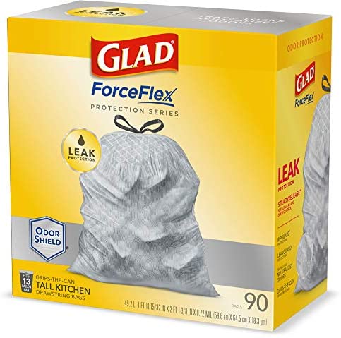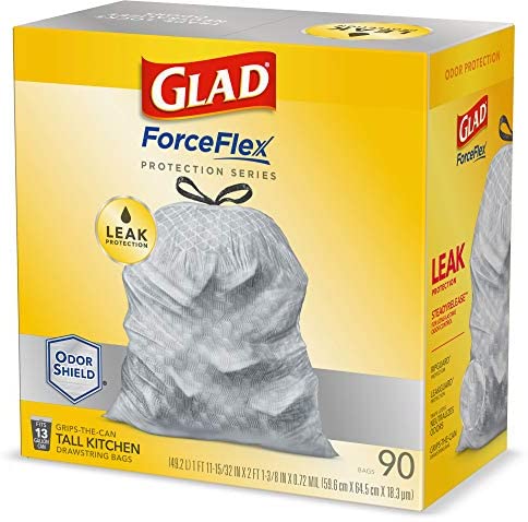 Combining innovative features, drawstring convenience and Glad reliability, this 13 gallon kitchen trash bag handles the most demanding jobs in the kitchen and throughout the house. The three-layer drawstring ensures easy opening and closing. Even the fullest bags can be closed with one quick cinch, and the strong drawstrings make removal and carrying simple and secure.