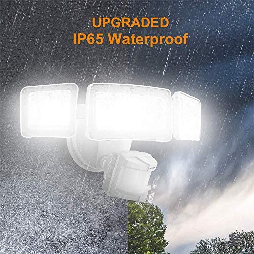 FULL METAL DESIGN & IP65 WATERPROOF: The outdoor security lights motion is made of FULL Aluminum, have excellent heat dissipation, which is more durable than other brands; The lifespan of light will be up to 50,000hrs; Upgraded IP65 waterproof, can be against any type of terrible weather like a rainstorm, sleet or snow, perfect for the porch, back yard, front door, garage, driveway, walkway, step, etc.