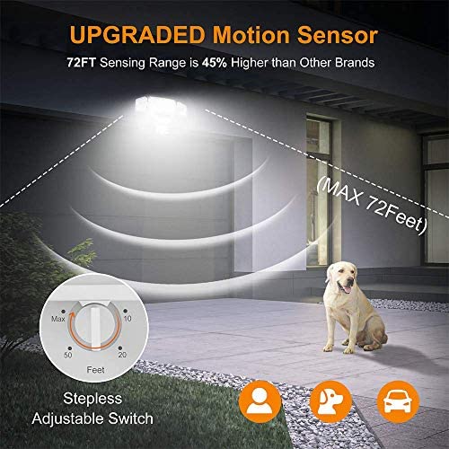 UPGRADED MOTION SENSOR LIGHTS: Lepower security motion light can be triggered by the moving human, cars or animals up to 72FT sensing range at 180°wide detection angle (General, most security lights being sold on Amazon are only 49FT); Also you can install cameras beside the security light. ETL certificated, it brings extra safety to your home.
