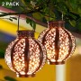MAGGIFT 2 Pack Hanging Solar Lanterns Retro Solar Lights with Handle, Outdoor Solar Garden Lights Decor for Yard Tree Fence Patio 6 Lumens, Brown