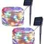 Set of 2 Solar Powered String Lights(100 LEDs per Strand), Outdoor Multicolor Copper Wire Fairy Lights, Waterproof Garden Decoration Christmas Lights