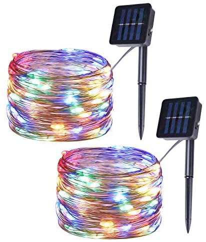 Package include: 2×100 LED Multicolor Copper Wire String Lights 2x Solar Panel
