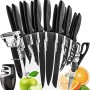 Our set comes with free extras that will quickly become your new essentials. Need to cut some fresh basil for your Italian dinner? Need to peel some fresh lemon rind? Need to sharpen your knife before chopping your fajita veggies? We have an answer to it all! Our set includes kitchen scissors, a peeler & a 2-stage knife sharpener!