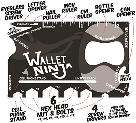 Wallet Ninja- 18 in 1 Credit Card Sized Multitool (#1 Best Selling in the World) (Black)